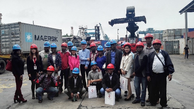 会谈结束后,卓志集团总裁田靖先生和行政总监赵蕊女士共同带领我院MPA-CGDC学生来到嘉利仓码有限公司(卓志前身,一家港口物流公司),走访码头,参观码头工作情况及相关设施设备。