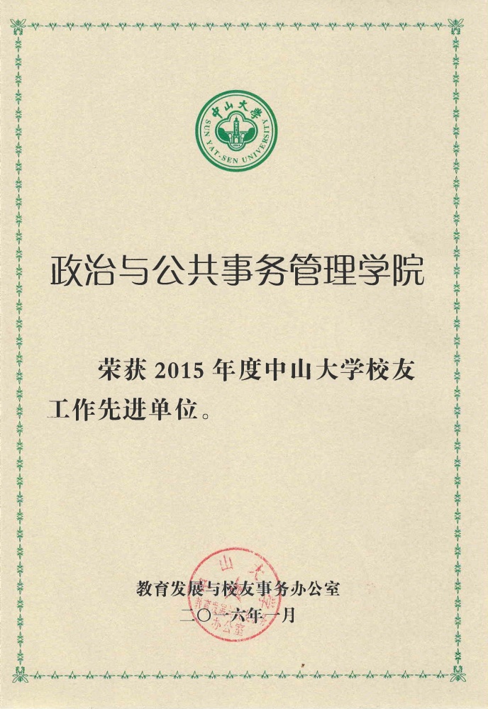 2015年,自1月校友理事会换届以来,在新一届会长肖滨院长的带领下,在第二届校友理事会的积极配合下,学院校友会秉承“服务校友、共谋发展”的宗旨,坚持“校友工作精细化”的理念,积极探索,大胆创新,扎实有效地开展了一系列工作:组织举办第二届校友理事会会议暨第二次“国家治理校友论坛”;建立北京、上海、深圳、珠海、茂名等地方校友微信群,密切联系各地校友;开展人才培养调研,到北京、茂名走访校友;搭建内外沟通桥梁,继续推进“职业导师制”;首次以微信方式发放校友调查问卷,持续更新校友数据库;邀请涂子沛校友回母校参加2015年毕业典礼,发挥杰出校友的示范带动作用;继续承办暑期校友寻访活动,做好值年校友返校聚会接待工作;我院第四届IMPA 学员获聘3044永利留学生校友国别理事;校友回馈母校,推动夏书章教授发展基金工作等。