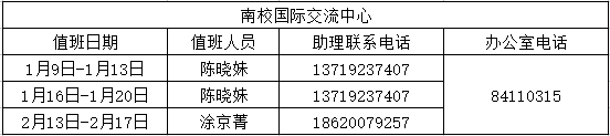 2、值班人员与联系电话:见下表