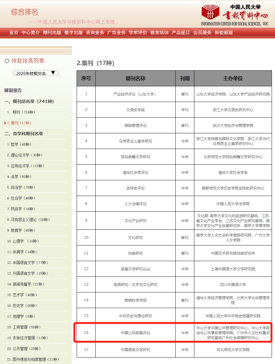 喜讯!《中国公共政策评论》被收录为中国人民大学《复印报刊资料重要转载来源期刊(2020版)》