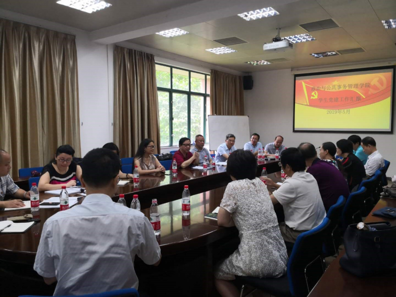 在听取和观看移动党校项目后,各位组织员老师移步到政务学院D104室,与政务学院党委就基层党建工作进行交流。政务学院党委肖滨书记、郭忠华副书记、谭英耀副书记以及学校党委组织部专职组织员万海峰老师共同出席了此次会议。