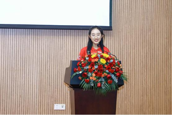 本科新生代表成文琪满怀对大学生活的憧憬与大家进行了分享。她希望能在大学阶段专注学习,深耕自我,同时积极与人合作,接纳自身的不足,将所学知识投入实践。
