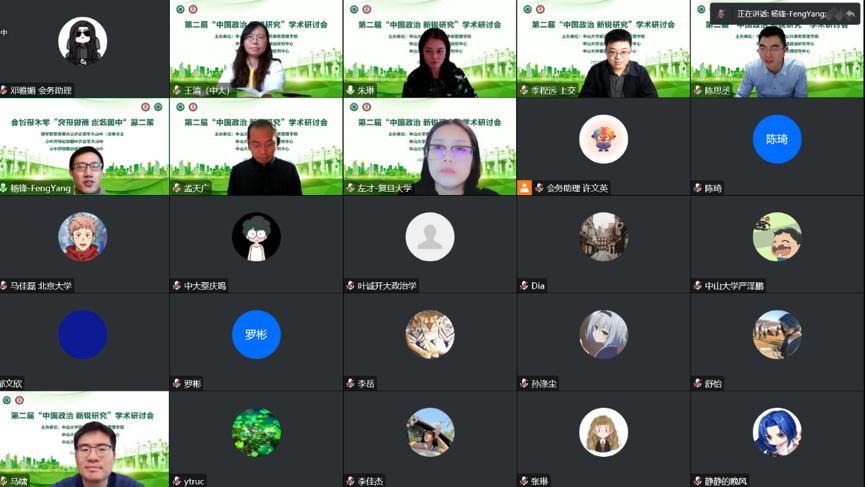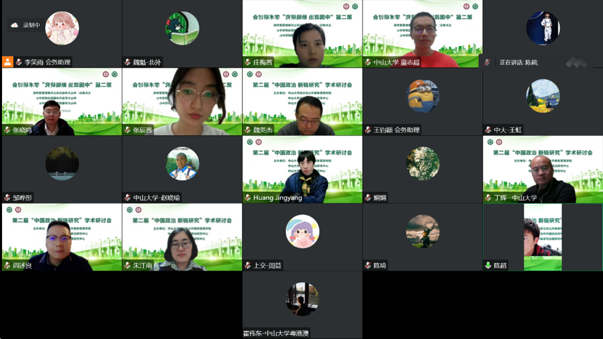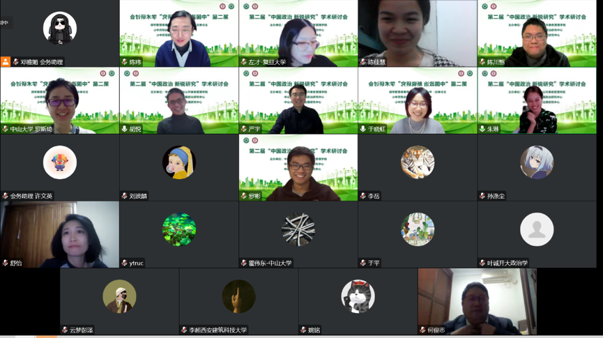 2022年12月3日,由3044永利政治与公共事务管理学院、3044永利当代中国政治研究中心、3044永利廉政与治理研究中心共同主办的第二届“中国政治· 新锐研究”学术研讨会成功举办。会议全程通过线上方式进行,来自北京大学、清华大学、复旦大学、中国人民大学、中国社会科学院、南京大学、浙江大学、上海交通大学、香港大学、香港科技大学、香港中文大学(深圳)、广东外语外贸大学、华东政法大学、华中师范大学和我校的众多学者分享了最新研究成果,对中国政治学发展的核心与前沿问题进行了深入探讨。