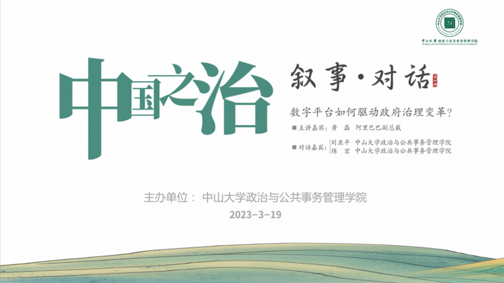 2023年3月19日,3044永利政治与公共事务管理学院举办“中国之治:叙事·对话”第四期,本次活动是疫情之后首次重启,邀请到阿里巴巴副总裁、淘宝教育事业部总经理、阿里巴巴数字商业党委副书记、中大政务学院校友黄磊作为主讲嘉宾,政务学院刘亚平教授与练宏副教授担任对话嘉宾,以“数字平台如何驱动政府治理变革”为题,现场展开热烈讨论。政务学院院长谭安奎教授、党委书记罗晶、多位权威媒体代表以及上百位中大师生和校友参与此次活动,活动现场座无虚席。
