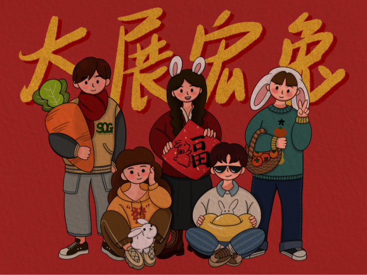 主题解释:寅虎辞旧岁,卯兔迎新春。政务学子祝各位前程似锦,大展宏“兔” !