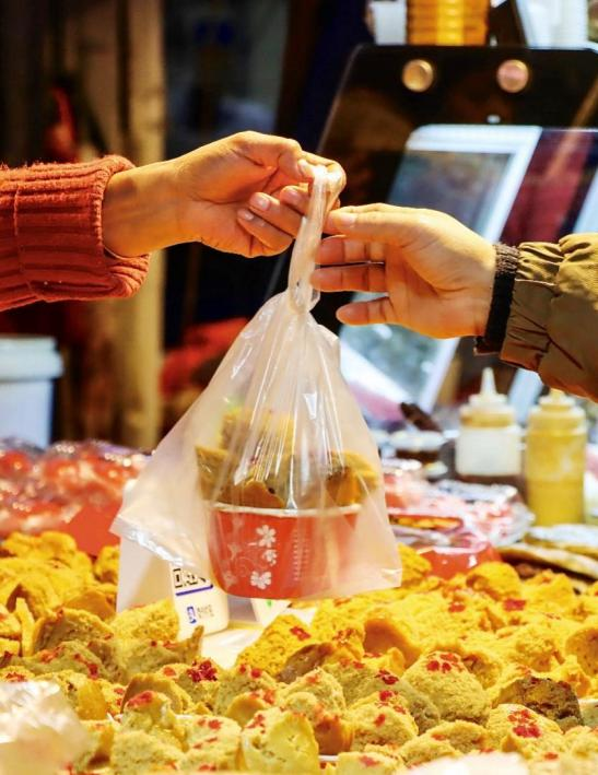 主题解释:照片中的糕点是闽南名点“碗糕”,寓意发家致富、幸福安康。第八市场是老厦门人最常去的市场,春节里年味十足,本地人都喜欢来这儿买上些许年货,而碗糕更是必不可少。一份碗糕,一份情怀;传递的年味,不变的乡情。红尖一抹,鸿运当头,在一捧蒸腾铺面的香气中咬上一口软嫩香甜的碗糕——这是家乡的年味。