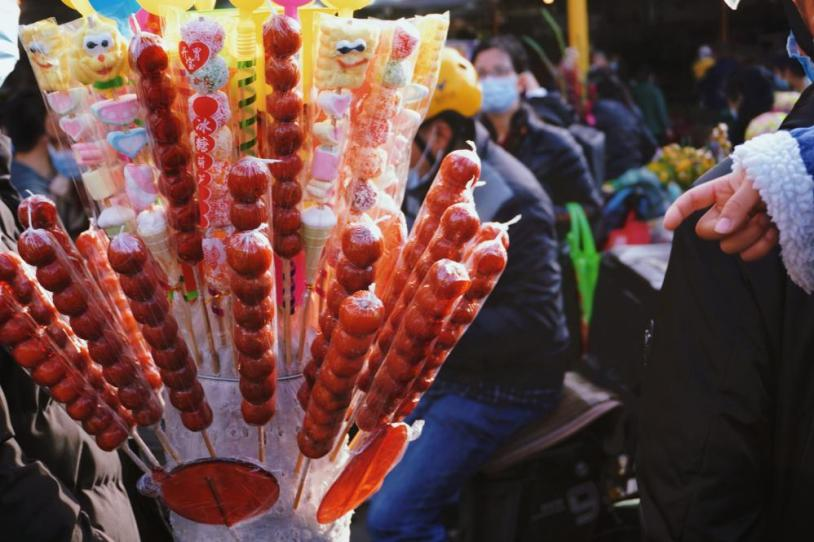主题解释:时隔三年,广州各区花市再次重启。岭南迎春花市熙熙攘攘,在各类鲜花与年桔之外,来来往往的年货小吃摊贩也为花市增添了别样活力。在人群之中,一位推着糖葫芦的摊贩与一位父亲怀抱着的小朋友侧肩而过,稚嫩的小手迅速伸向火红的糖葫芦,令人忍俊不禁。在小朋友眼里,那大概就是春节的样子。