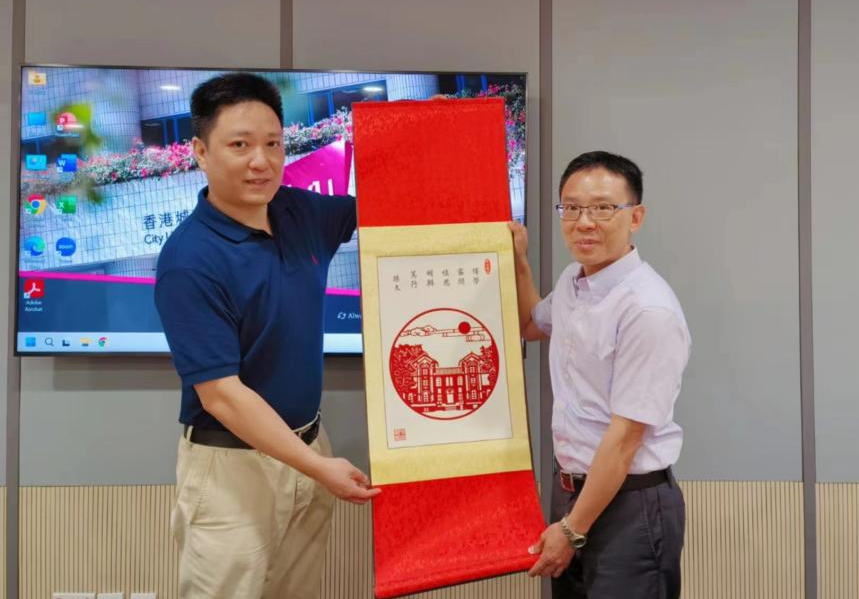 王秋石教授代表政务学院向香港城市大学公共及国际事务学系赠送纪念品