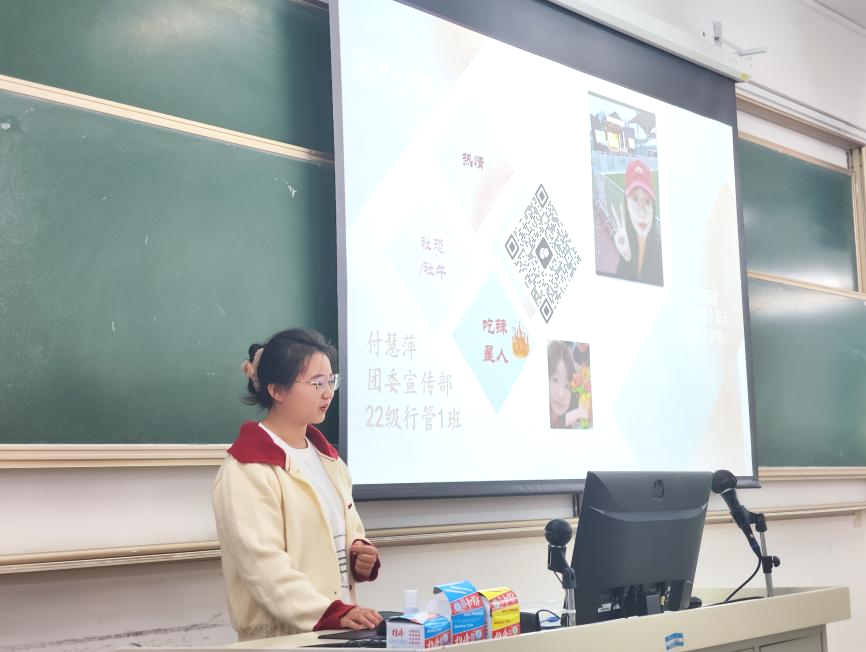 学生兼职副书记邓雅媚同学对新加入团委大家庭的成员们表示欢迎,对团委各部门的努力表达了衷心感谢,并鼓励团委成员积极开展学院活动,为学院发展贡献自己的力量。