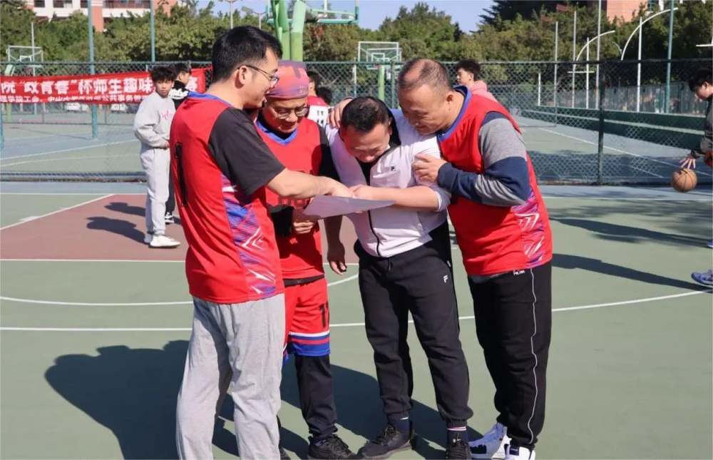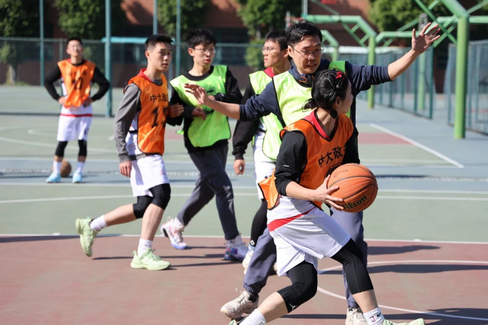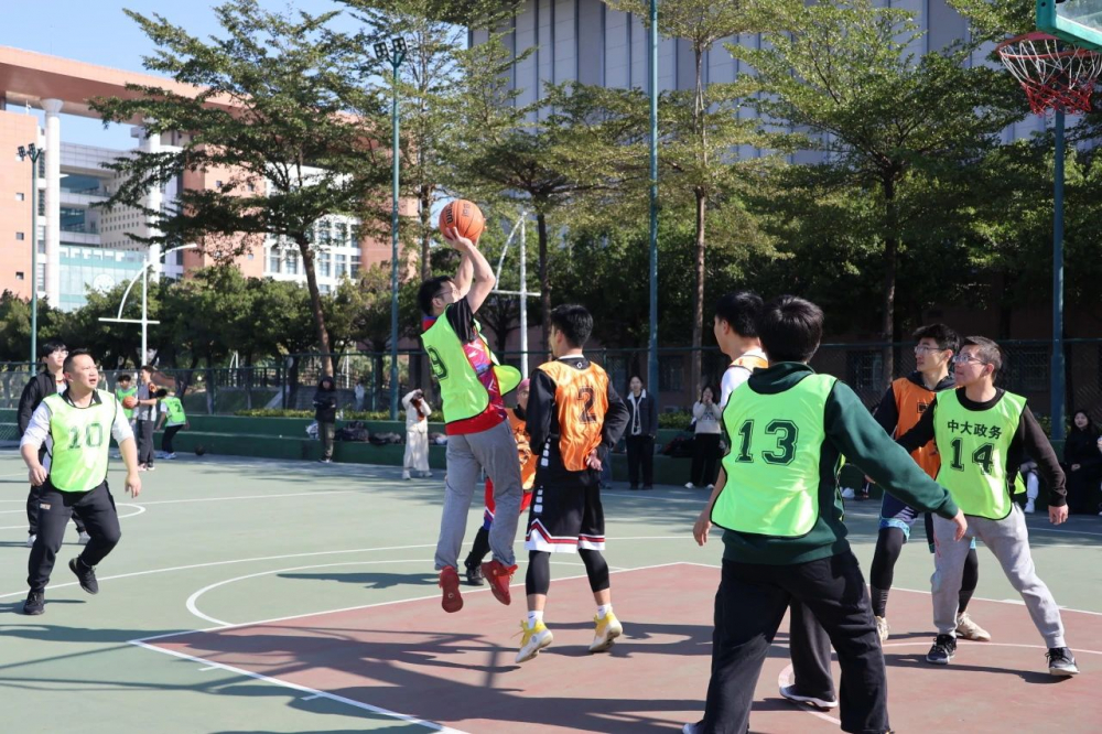 政务学院谭安奎教授、叶林教授、练宏副教授、丁辉副教授、庄文嘉副教授、起晓星副教授、吴少龙副教授、李佳源副教授、彭慧东博士后、南方科技大学王雨副教授及16名本硕博学生参加了本次比赛,组成四支队伍进行了火热的比拼。篮球场上热闹非凡,欢呼声、助威声此起彼伏。师生们身穿鲜艳的队服,面带笑容,奋力比拼球技,展现出青春活力与朝气蓬勃的精神风貌,彰显团结合作的精神。
