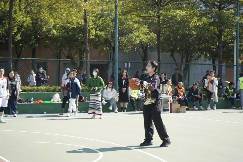 除了紧张刺激的对抗外,比赛也不乏轻松欢乐的节目。在第一轮比赛的休息阶段,研究生会精心策划了一场别开生面的“五点投篮”游戏,参赛者在最短时间内投中更多的球获胜。全活动中,每个参与者都全神贯注,一旁围观的师生也热情高涨,为每一个进球欢呼雀跃,给每一名选手加油鼓劲。