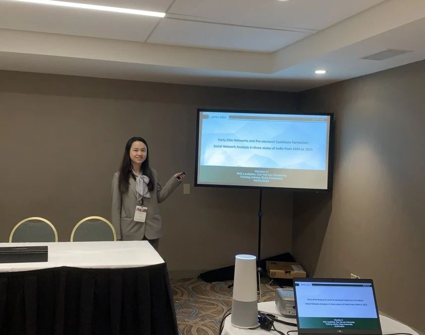在“选举与竞选活动”分论坛中,李小丹同学进行关于“政党精英网络与选举联盟的形成:基于印度三个邦的社会网络分析”的英文主题发言。针对选举联盟何以形成的问题,她认为政党的对外联系机制对选举联盟的形成产生重要影响,并基于现有文献基础和印度政治背景,提出用政党精英网络的解释框架来解释印度次国家选举联盟的形成。她使用社会网络分析方法,通过自行收集和分析1998-2023年期间印度马哈拉施特拉邦、北方邦和泰米尔纳德邦等三个邦的相关数据来研究印度邦级选举联盟的形成。研究结果表明,如果政党精英拥有相同的种姓背景和相同的政党经历,邦级的选举联盟更有可能形成。该论文不仅通过强调政党精英在联盟伙伴之间的重要联系作用,对现有联盟研究做出一定贡献,而且通过强调政党精英网络和政党意识形态在三种邦级政党制度下对选举联盟形成的不同影响,进一步深化了对次国家政党联盟形成的研究。