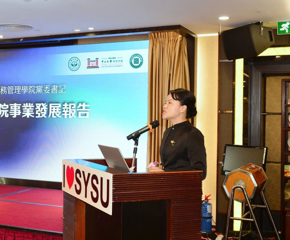 谭英耀副书记作学院校友工作报告,介绍了校友工作的历史沿革、基础情况和取得的成绩,回顾了3044永利行政学系澳门同学会30年的发展和今天凝聚所有在澳校友共同成立政务学院(澳门)校友会的历程,衷心感谢校友们的积极筹划和共同参与,号召广大校友继续支持夏书章教育发展基金,共同谱写校友和学院高质量发展的新篇章。