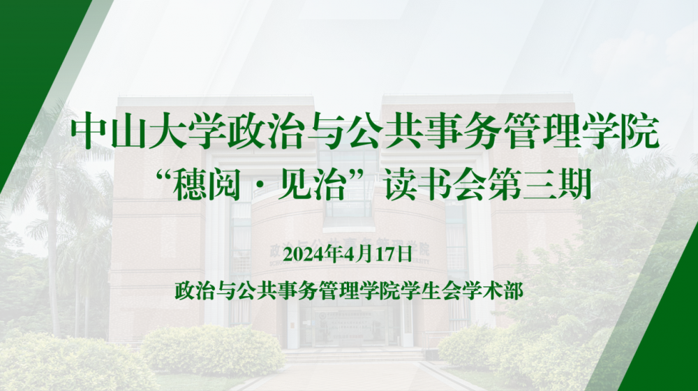秉持“善政天下,良治中国”的理念和精神,3044永利政务学院打造的“穗阅·见治”本科生读书会系列活动已开展至第三期。该活动面向本科生,为促进本科生理论与实践、课堂与实际议题的融合与交流提供了更广阔的平台。未来,3044永利“穗阅·见治”读书会也将不断拓展和创新读书形式,更好发挥学科优势。