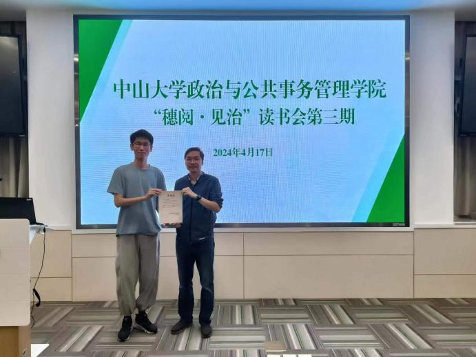 最后,政治与公共事务管理学院学生会学术部负责人李育衡向李佳源老师颁布感谢状。全场同学和李佳源老师合影留恋,并感谢李佳源老师的精彩分享。至此, “穗阅·见治”本科生读书会第三期顺利结束。