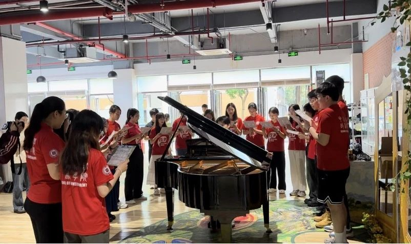 激情澎湃的歌声,彰显着同学们蓬勃向上的青春活力;慷慨激昂的“白云山高,珠江水长”与“善政天下,良治中国”,更饱含着政务学子对学校和学院热烈而深沉的情感,现场的氛围也在歌声的渲染中逐渐被点燃。