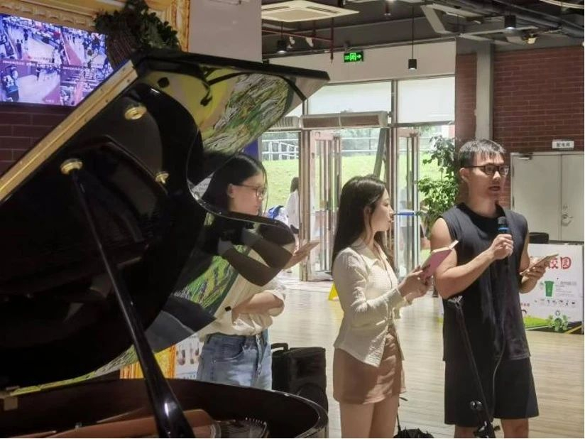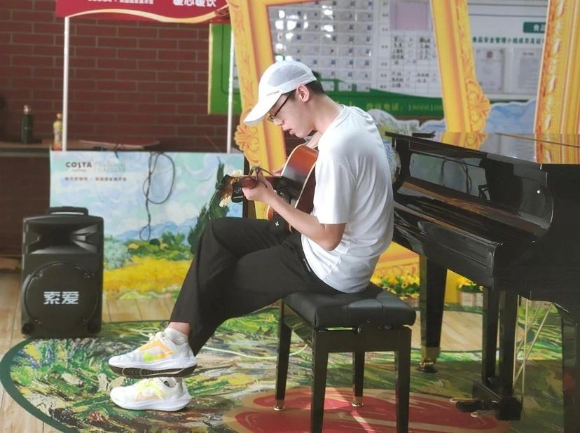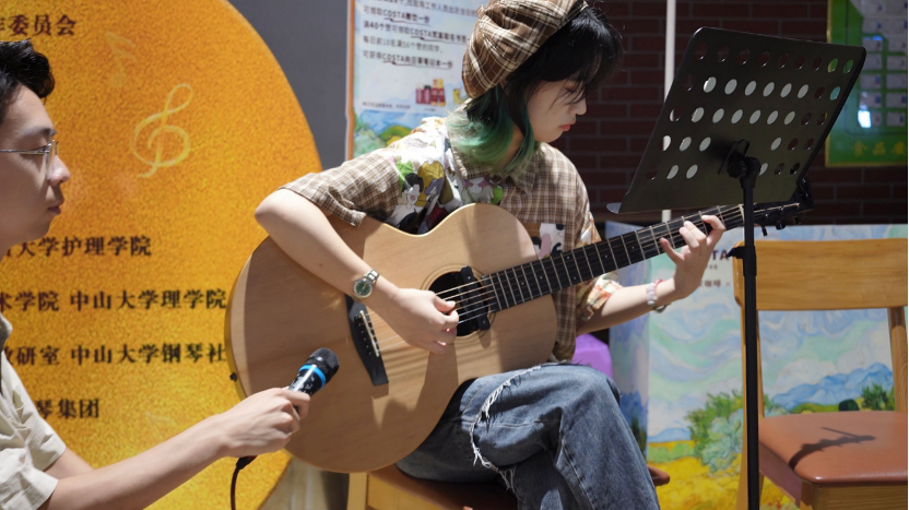 2022级政行班何圣娴同学和2023级公管1班张兴铭同学分别用吉他弹唱了《鱼》、《无题》歌曲,这种吉他弹唱的形式不仅展现了他们对音乐的独特理解和表达方式,而且丰富了本次活动的音乐文化。他们用心弹奏每一个音符,将歌曲的情感和意境完美诠释,让人仿佛置身于音乐的海洋之中。