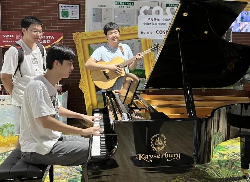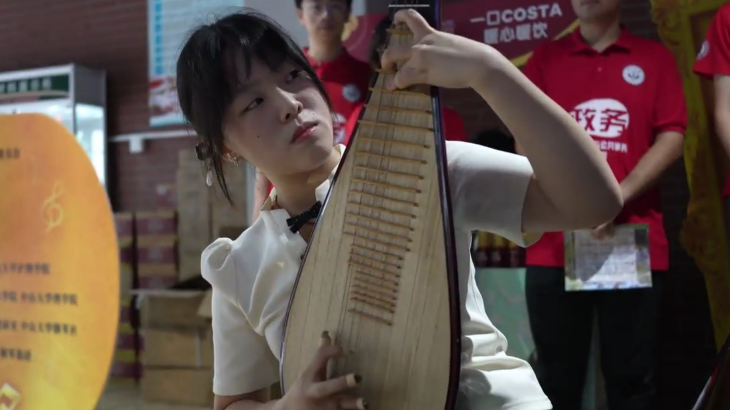 2022级行管2班的林语晴同学一曲琵琶独奏《送我一枝玫瑰花》旋律悠扬婉转,如潺潺流水般轻盈灵动,不仅蕴含着深深的情感,更洋溢着欢快的舞曲风情,与中大历尽百年沧桑却依旧鲜亮的风采交相辉映。