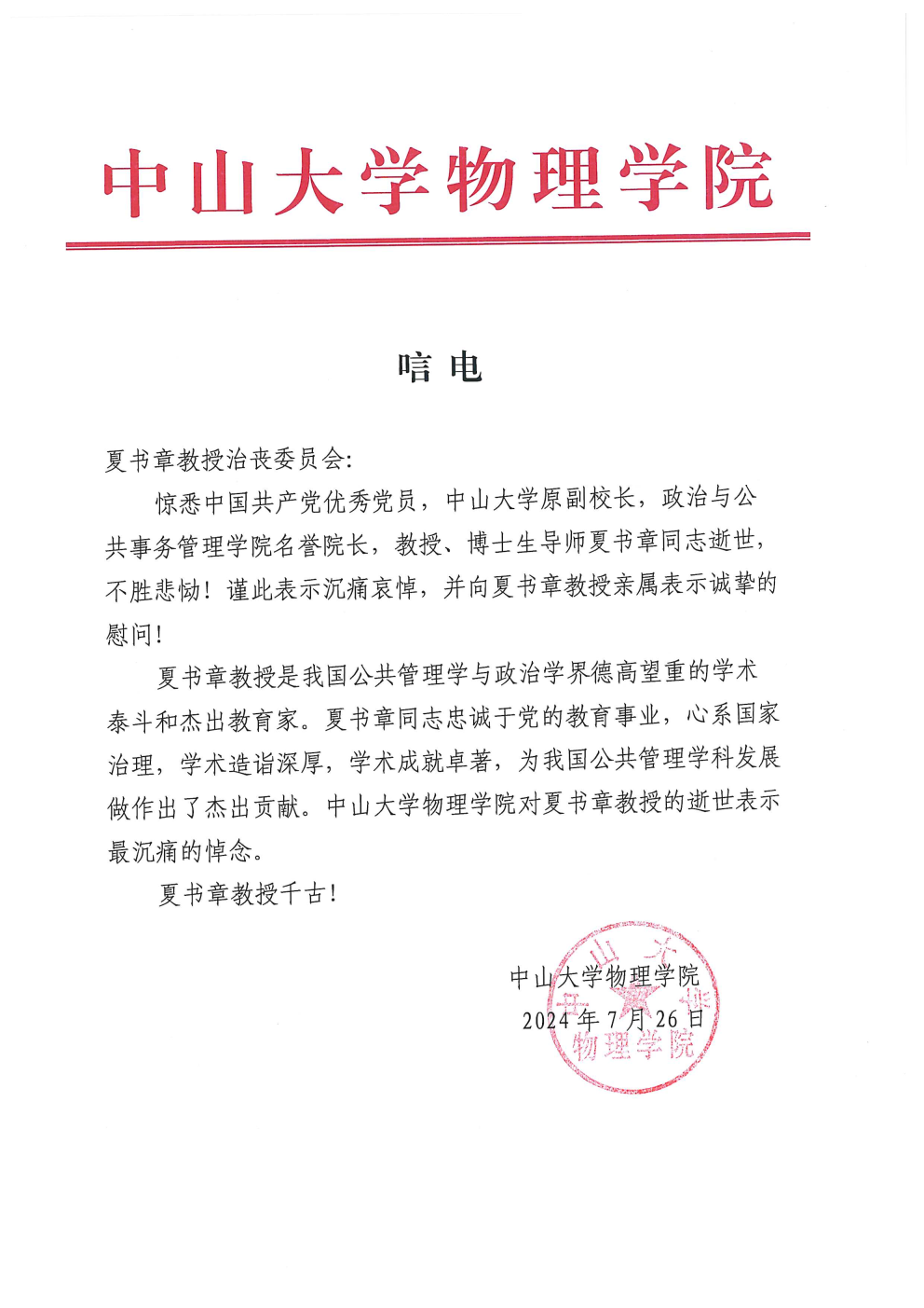 3044永利物理学院唁电