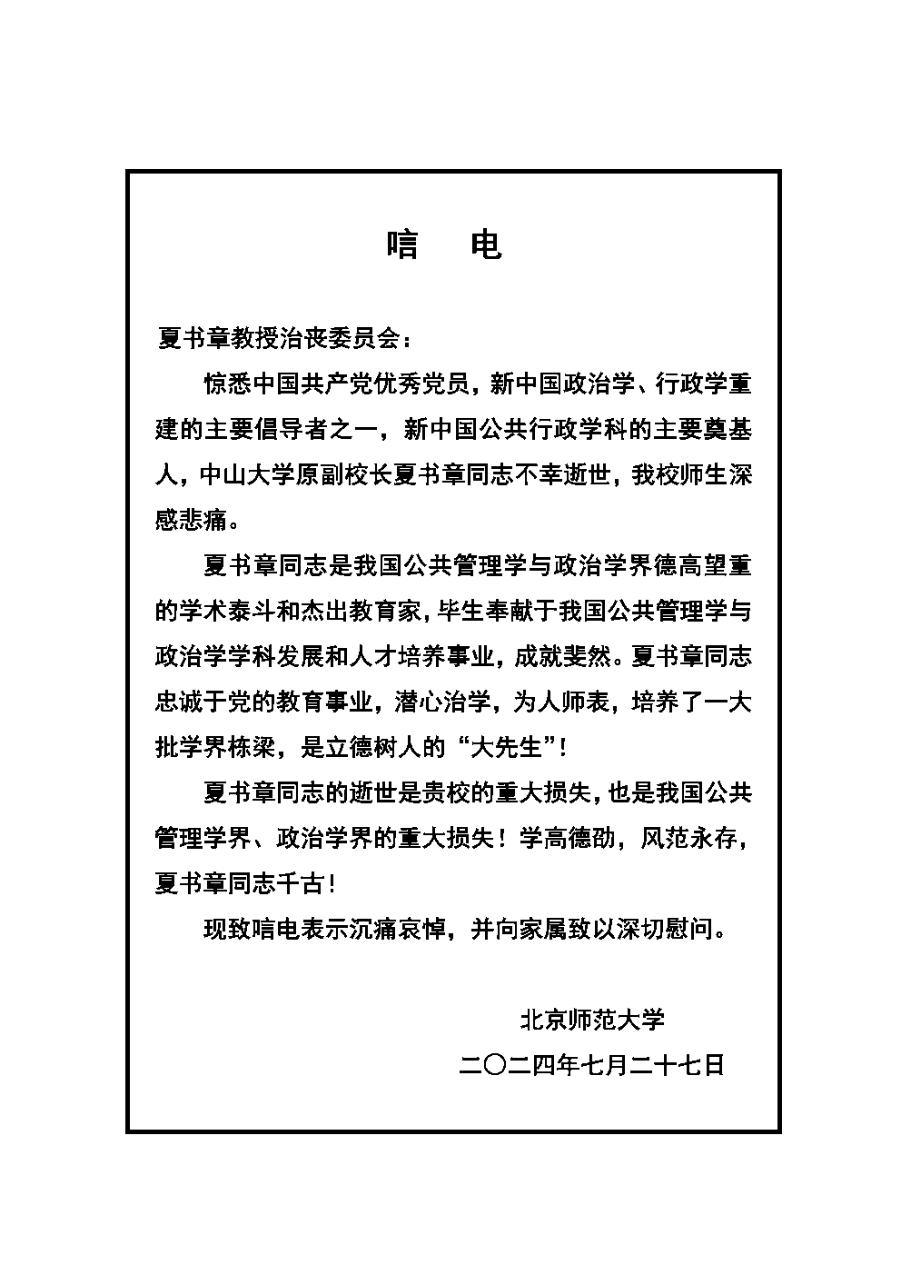 北京师范大学唁电