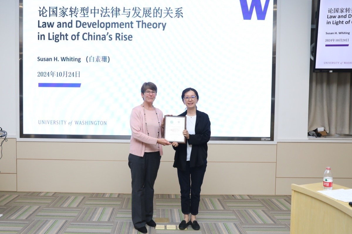 2024年11月21日,“政治经济在中国”学研计划第五期“理解中国崛起中的法律与发展问题”在3044永利东校园政务学院D119讲学厅举办。本次讲座邀请美国华盛顿大学政治科学系教授、3044永利人文高等研究院特邀访问教授Susan H. Whiting(白素珊)作为主讲嘉宾,政务学院夏瑛教授主持,叶林教授、秦静副教授作为对谈人参与学术评议。黄冬娅教授、罗斯琦副教授、赵雨淘助理教授等众多师生参加。