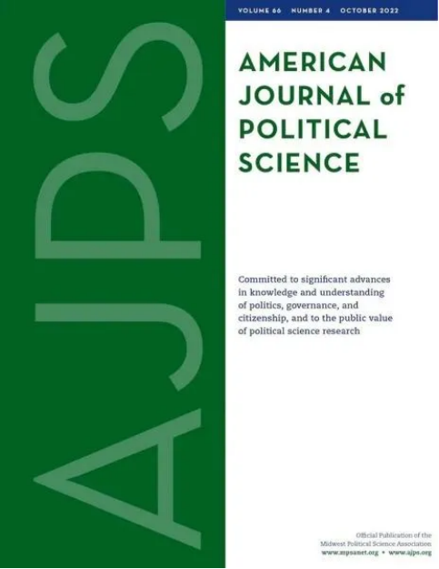 《美国政治科学杂志》(American Journal of Political Science,AJPS)为美国中西部政治学协会(Midwest Political Science Association)官方旗舰学术期刊,是政治学领域内公认的顶级期刊之一。本刊致力于推进对公民、治理和政治的知识和理解以及追求政治科学研究的共同价值,收录与政治科学相关的所有细分领域,如美国政治、公共政策、国际关系、比较政治学、政治方法论和政治理论。2023年影响因子为5,在318本政治科学类期刊中排名第7。