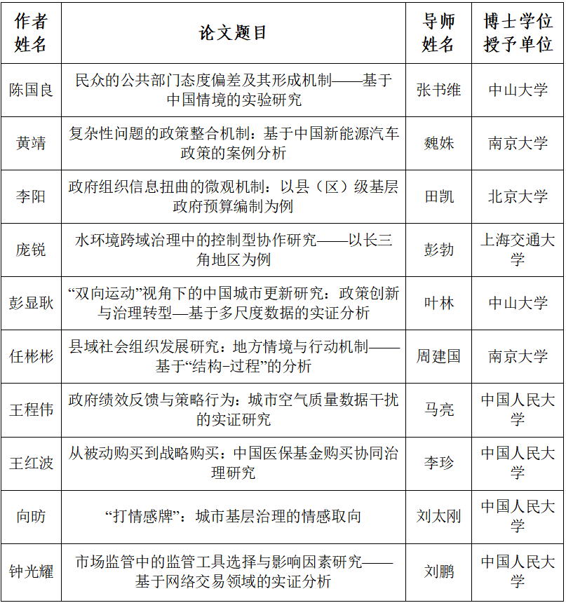 注:现场终评将从以上10篇博士论文中评选出优秀博士论文奖以及优秀博士论文奖提名奖。
