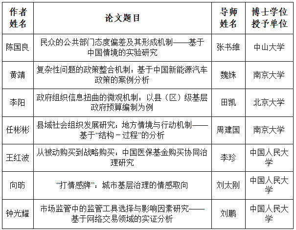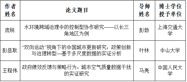 第一届“夏书章学术奖”优秀博士论文奖提名奖