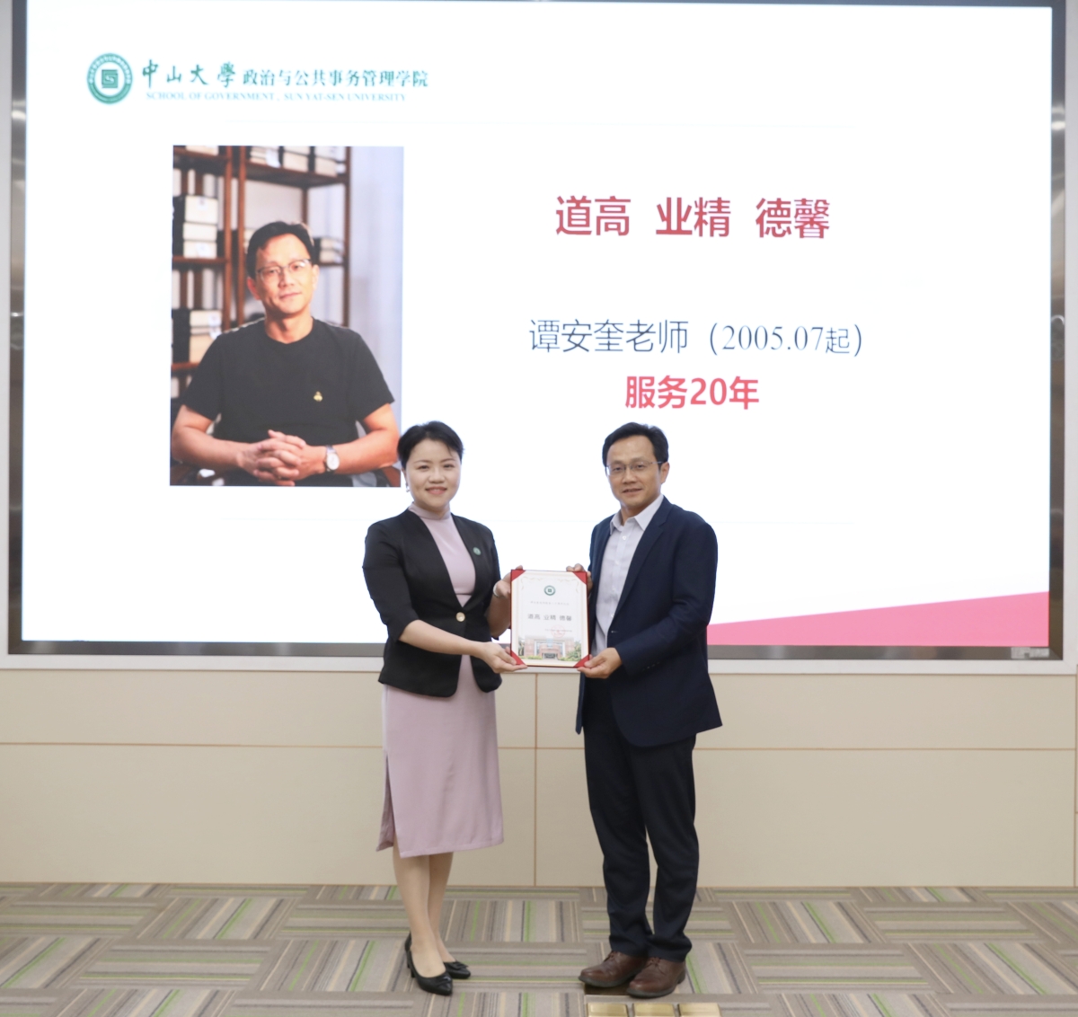 为表彰教职工的忠诚服务,传承学院“道高、业精、德馨”的优良敬业精神,学院设置了服务纪念奖。共有4位教职工获得“服务10周年纪念奖”,5位教职工获得“服务20周年纪念奖”。他们分享了自己的深情感悟,表示在学院的岁月是人生中最珍贵的一段历程,感恩前辈的悉心指导、同事的暖心相伴。同时,也向青年教职工寄予深切厚望、送上美好祝愿,衷心期盼学院在大家的共同努力下,蒸蒸日上,越来越好。